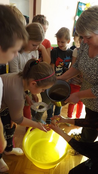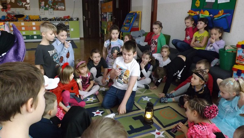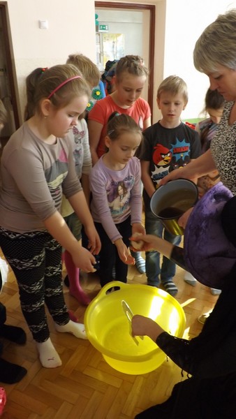 28 listopada w zaczarowany świat magii i wróżb przenieśli się uczniowie klasy IIa, którzy na wspólne wróżenie, czarowanie i zabawę zostali zaproszeniu przez dzieci z Przedszkola „Tęczowego” nr 4. Andrzejkowa Wróżka, przy pomocy rekwizytów przepowiadała dzieciom przyszłość, m.in. jaki zawód będą wykonywać, gdzie udadzą się w podróż, czy też czego powinny się wystrzegać. Nie zabrakło ustawiania bucików i tradycyjnego lania wosku. Czas pomiędzy wróżbami urozmaicały zabawy przy piosenkach z repertuaru dziecięcego. Andrzejkowe zabawy dostarczyły wszystkim uczestnikom wielu niezwykłych przeżyć i emocji.