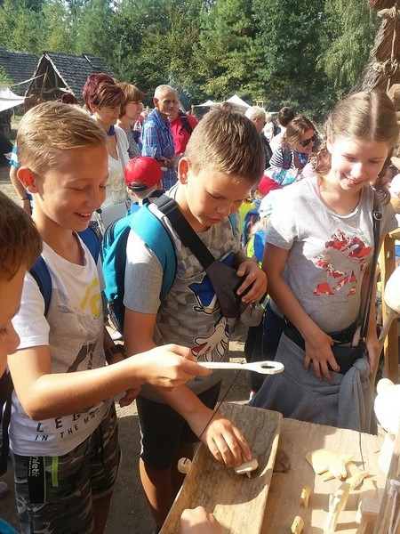 Co roku we wrześniu Muzeum w Biskupinie staje się miejscem festynu archeologicznego, na który zjeżdżają tysiące gości z całej Polski i Europy. 18 września uczniowie klas IV-VII naszej szkoły uczestniczyli w XXIV Festynie Archeologicznym pt. „Archeomarket. Od wymiany po stragany”, poświęconym przede wszystkim rozwojowi handlu począwszy od epoki kamienia po średniowiecze. Uczniowie poznali sposób wymiany „towar za towar” oraz początki pojawienia się pierwszej monety i szlaki handlowe w Europie. Atrakcji było mnóstwo! Uczestnicy festynu oglądali m.in. wybijanie monet, farbowanie tkanin naturalnymi sposobami, wyrabianie naczyń i narzędzi glinianych, wytapianie metalu oraz wygląd przeciętnej chaty. Główną atrakcją była możliwość samodzielnego wykonania monety dowolnego wzoru oraz naczyń z gliny. Uczniowie odwiedzili również stoiska z wikliną, miodem, papierem czerpanym i różnorodną biżuterią. Gospodarze festynu witali uczestników w strojach z dawnych epok i tworzyli niepowtarzalną atmosferę. Można było przez chwilę poczuć się mieszkańcem średniowiecznej osady, gdzie zbiera się miód, tka ubrania, wyrabia narzędzia u kowala lub stolarza albo piecze chleb w prymitywnych piecach. Pod osadą biskupińską natomiast rozgrywano walki gladiatorów. Wycieczka zakończyła się przejażdżką kolejką wąskotorową na trasie Biskupin-Żnin. Drogę uprzyjemniał dźwięk stukoczących kół charakterystyczny dla pociągu oraz możliwość podziwiania z okien pięknych pałuckich widoków.