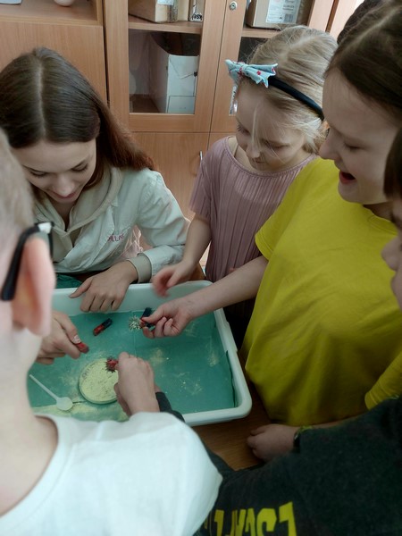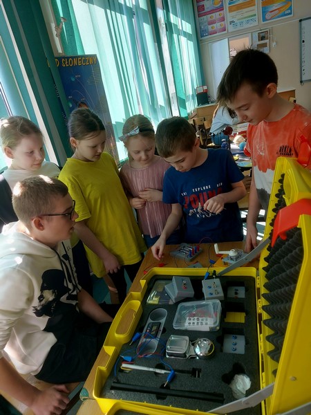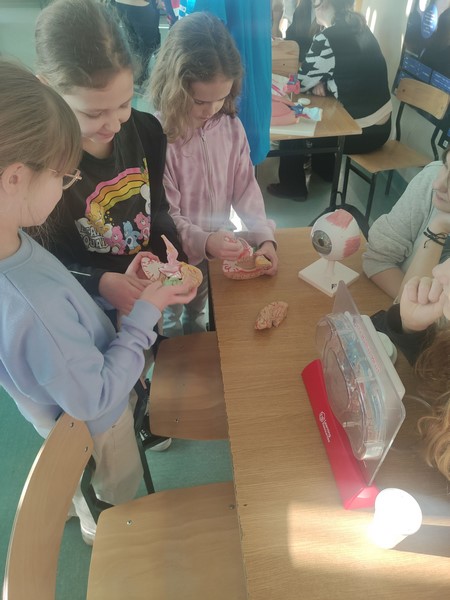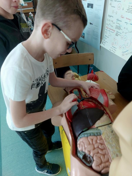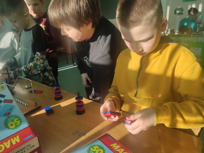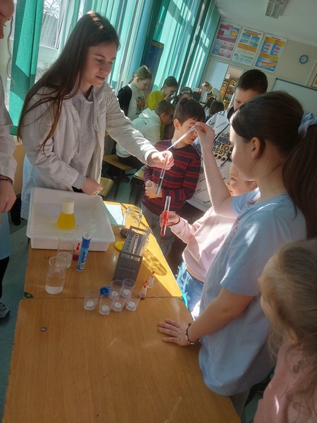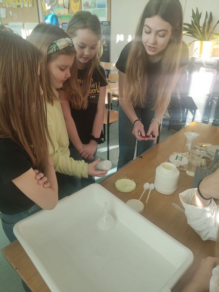 Kolejny raz uczniowie klasy 8e 4 kwietnia przygotowali i przeprowadzili doświadczenia z uczniami z klas 2a, 2b, 3c. Dzieci samodzielnie wykonywały eksperymenty, badając właściwości elektryczne i magnetyczne ciał, mieszały substancje chemiczne otrzymując kolorowe ciecze, posługiwali się modelami tułowia, szkieletem człowieka, modelem Układu Słonecznego. Przygotowane doświadczenia z pewnością pokazały dzieciom jak ciekawe i magiczne są przedmioty ścisłe. Należy pamiętać, że zabawa badawcza ma ogromny wpływ na rozwój i wychowanie dziecka. Nasza szkoła takich emocji dostarcza!