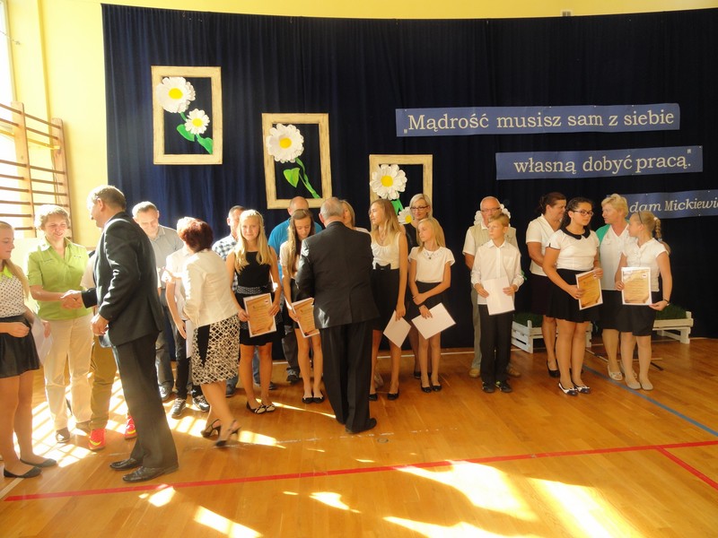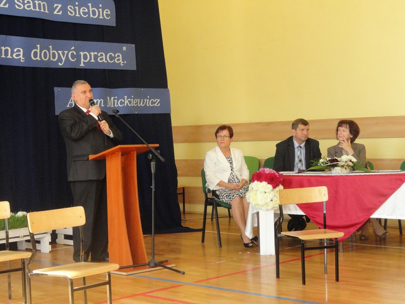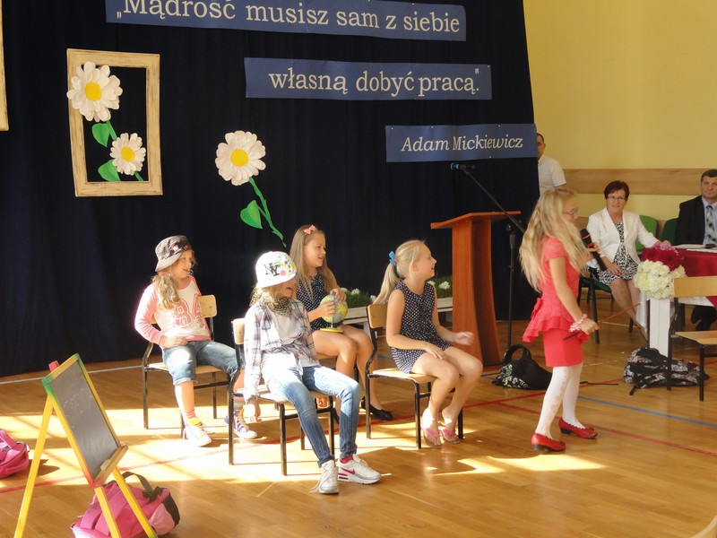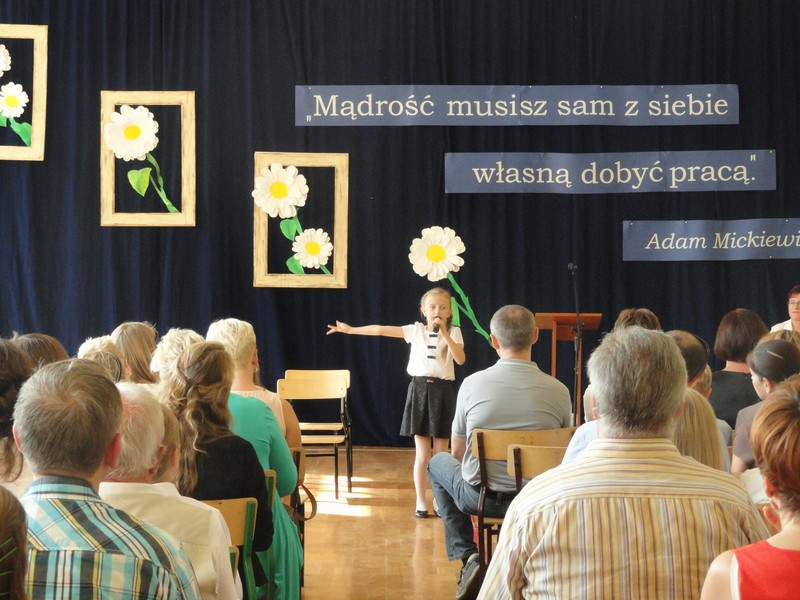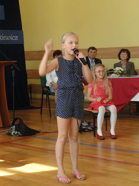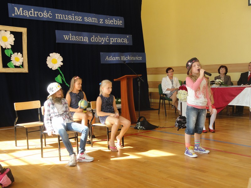 Uroczystość rozpoczęła się częścią artystyczną w wykonaniu uczniów klas młodszych naszej szkoły. Następnie dyrektor szkoły pani Maria Kukulska powitała wszystkich bardzo serdecznie, podkreślając, że sukcesy uczniów to nie tylko wynik ich wytrwałej pracy, ale także efekt wspólnych działań rodziców, nauczycieli i władz miasta, które starają się zapewnić młodemu pokoleniu jak najlepsze warunki nauki i wszechstronnego rozwoju. Pani dyrektor zaakcentowała, że warto tę współpracę kontynuować, by takich wzruszających uroczystości jak ta dzisiejsza było w naszym mieście jak najwięcej.