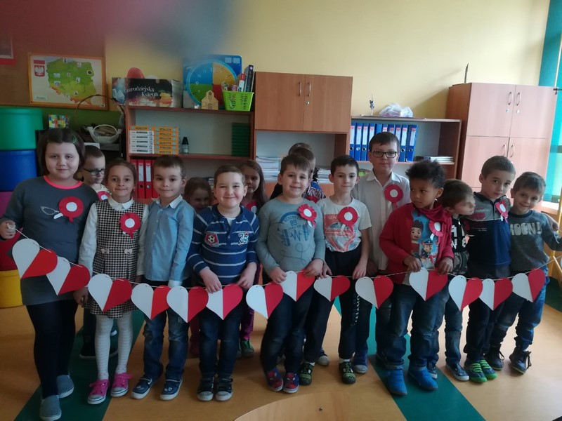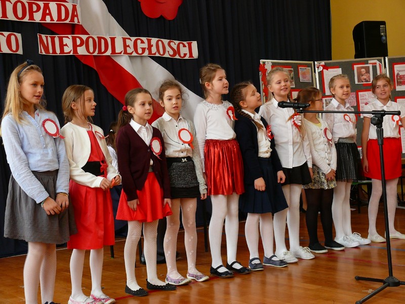 10 listopada w naszej szkole odbyła się uroczysta akademia z okazji Święta Niepodległości. Było to widowisko artystyczno-historyczne, mówiące o odzyskaniu niepodległości przez Polaków. Główny wątek przedstawienia to rozmowa uczennicy z tajemniczym głosem i przypomnienie najważniejszych zrywów niepodległościowych Polaków w drodze do wolności. Na scenie pojawił się kosynier, rozbiorcy oraz sam Józef Piłsudski. Akademie uświetniły pieśni patriotyczne w wykonaniu uczniów. Upamiętnieniem 99 rocznicy były również wykonywane wcześniej girlandy i biało-czerwone serca, z których uczniowie ułożyli na boisku szkolnym kontur naszego kraju. Łańcuchami z serc udekorowano szkolne korytarze, a girlandy towarzyszyć będą uczniom podczas jutrzejszych biegów niepodległościowych.