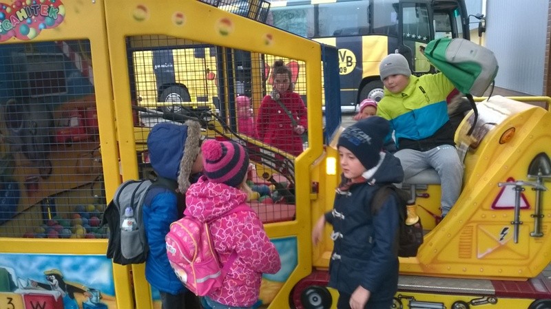 21 listopada 2014 r. pod opieką swoich starszych kolegów z 2a, uczniowie klasy 1b pojechali na swoją pierwszą szkolną wycieczkę do Kalisza. Na dzieci czekało wiele niespodzianek. Pierwsza to wizyta teatrze im. Bogusławskiego na przedstawieniu pt. „Pszczółka Maja”. Uczniowie dzięki Mai i Guciowi poznali mieszkańców łąki, ich zwyczaje i upodobania. Wielką frajdą dla dzieci okazał się fakt, że razem z aktorami mogli uczestniczyć w przedstawieniu. Następnie przejechaliśmy do sali zabaw Megahitek gdzie dzieci mogły bawić się na zjeżdżalniach, basenach kulkowych, trampolinach i wielu innych stacjach zabaw. Zmęczeni, ale bardzo zadowoleni szczęśliwie wróciliśmy do domu. Za super zachowanie dzieci czeka niespodzianka Mikołajkowa, o której na pewno napiszemy.